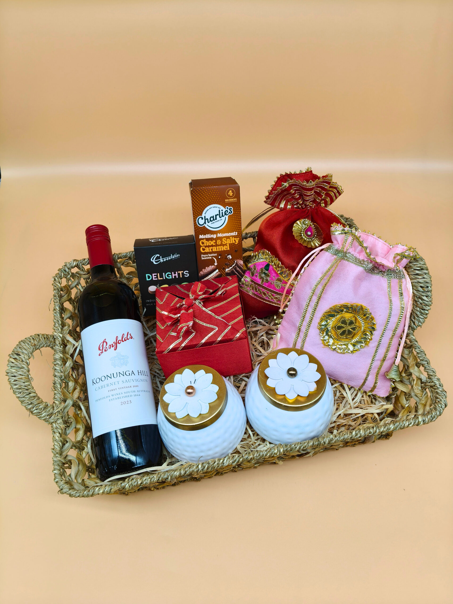 • Packed in a beautiful seagrass tray wrapped in a golden net
