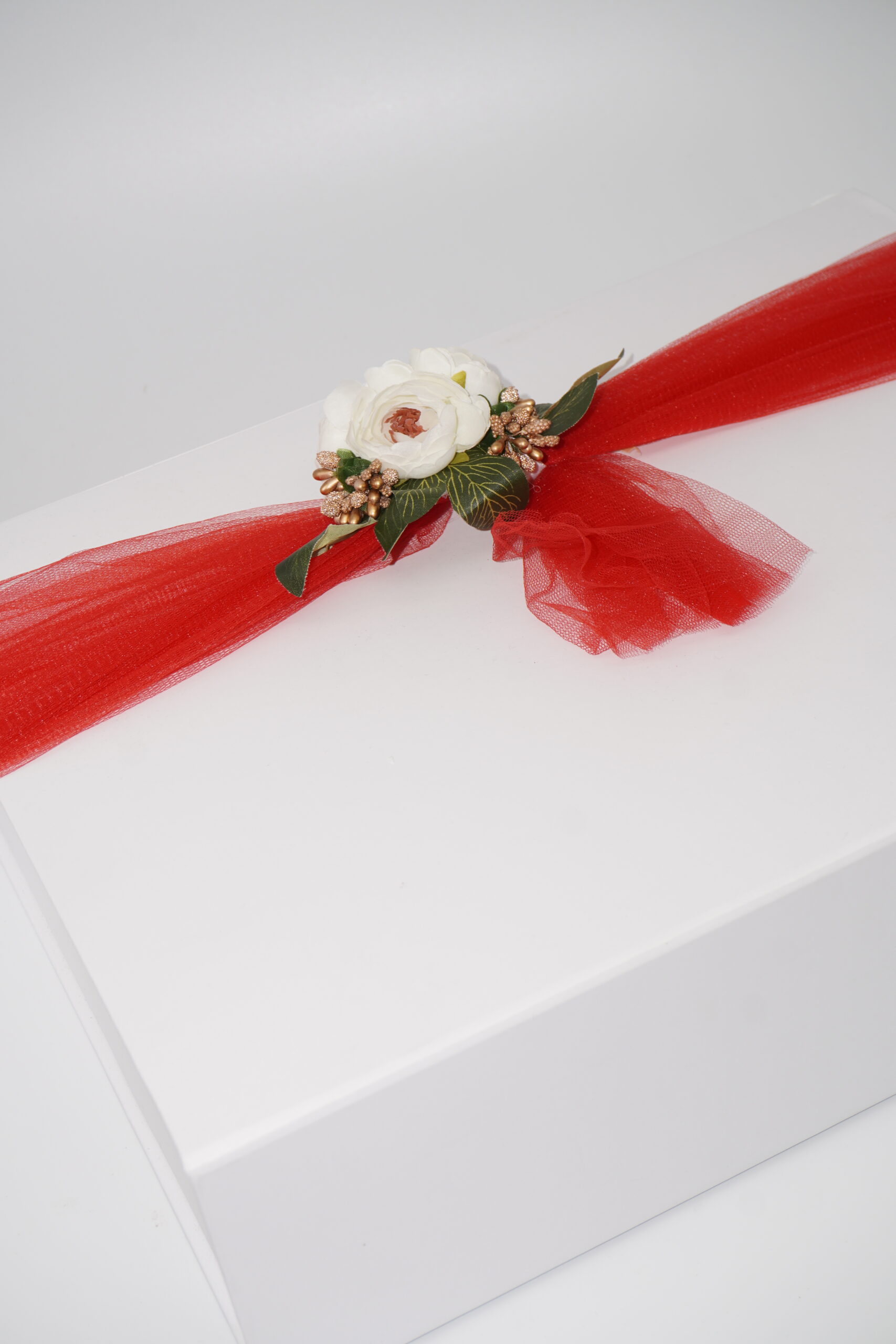 Elegant White Gift Box with Net Ribbon – Timeless, refined, and ready to impress.