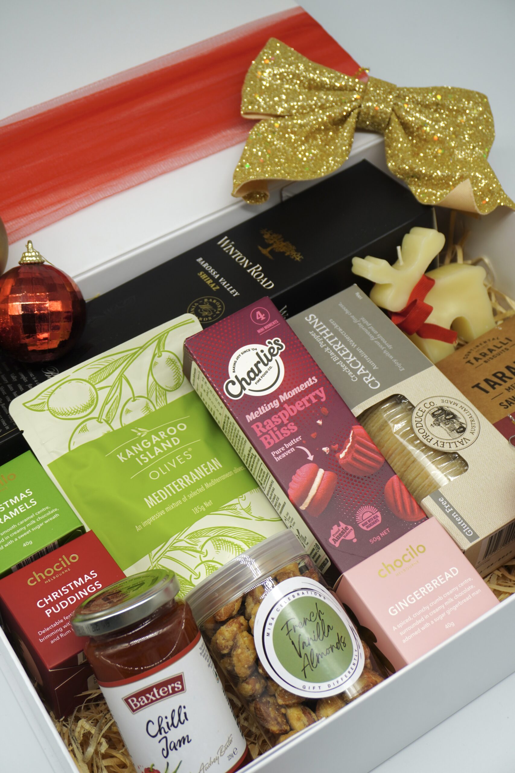 Celebrate the magic of the season with our Luxury Christmas Celebration Gift Box, an exquisite collection of premium wine, gourmet delights, and festive touches. Elegantly presented in a white gift box finished with a delicate net ribbon, this hamper embodies sophistication and holiday spirit — the perfect way to say Merry Christmas in style.